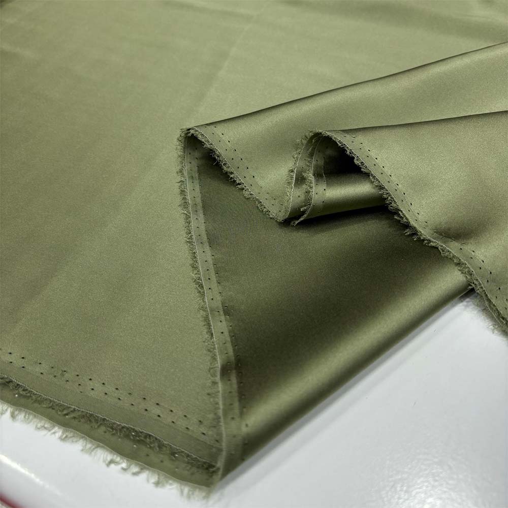 %100 İpek Saten Kumaş Haki