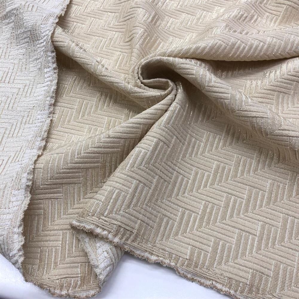- Desenli ve kabartmalı bir dokumaya sahiptir.