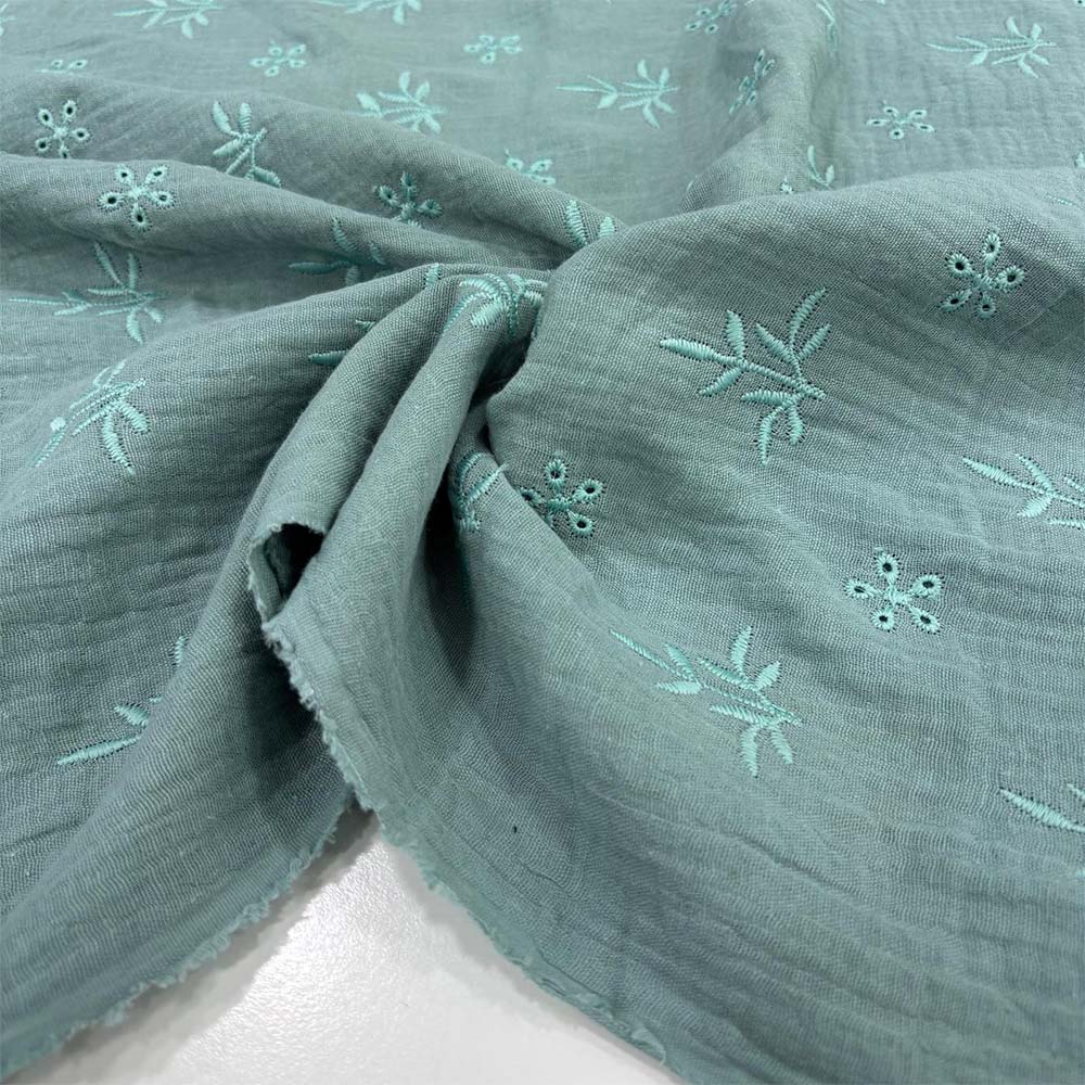 Çift Kat Nakışlı Müslin Kumaş Yeşil