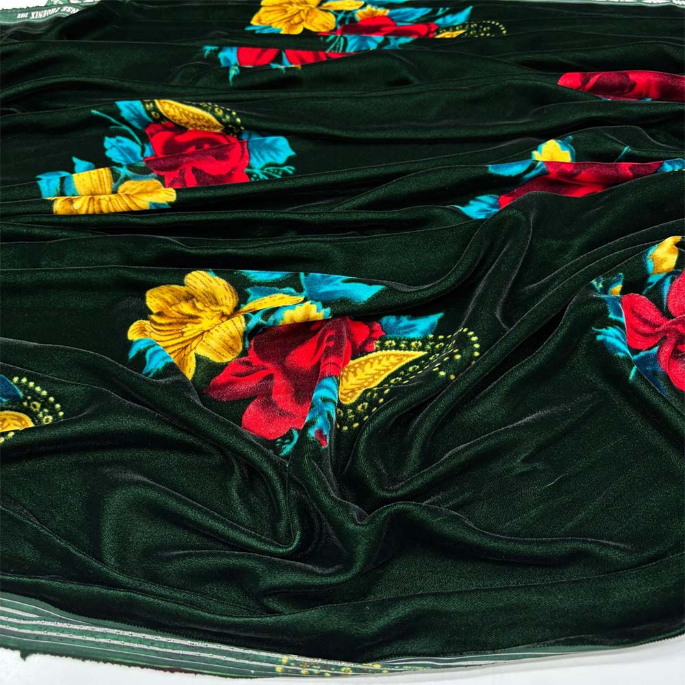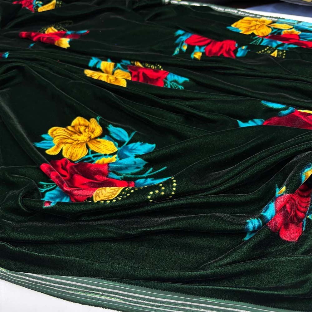 Desenli İpek Kadife Kumaş Zümrüt Yeşili