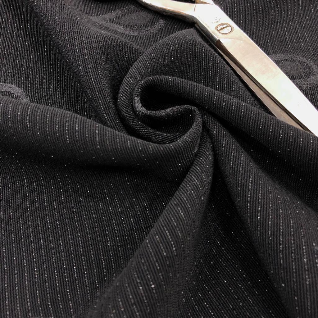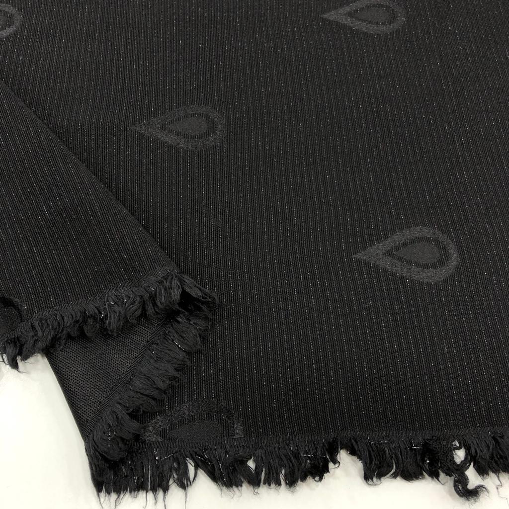 Kendinden Desenli Simli Brokar Kumaş Siyah
