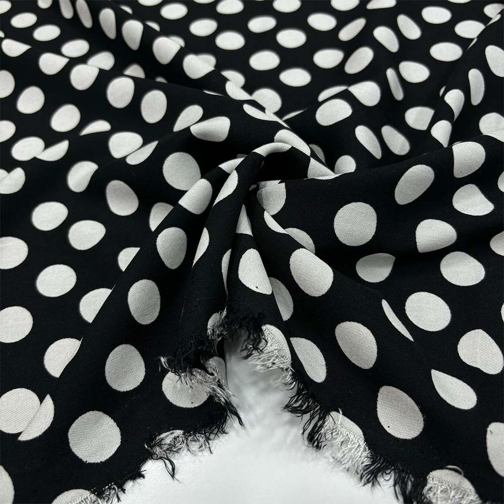 Desenli viskon kumaşımız çift en olup eni 150 cm’dir. Desenli Viskon kumaş dökümlü bir duruşa sahip, içeriğinde naylon, polyester, petrol maddesi bulundurmayan bir kumaştır. Pamuklu olmasından dolayı yakma terletme yapmaz hatta serin tutma özelliği vardır. Ter çekme özelliğine sahiptir. Sıcak havalarda serin ve rahat bir kullanım sağlar. Soğuk havalarda üşümeye sebep olacak etkisi olmaz. Hem yakma terletme yapmaz hem de kırışma yapmaz, dökümlü kumaş olduğu için azda olsa kırışma yapsa bile kendi kendine kırışıklığı düzelir robalı, büzgülü, fırfırlı, serbest pileli, çan, kiloş, vb. modellerde kullanılan iç göstermeyen viskon empirme kumaştır. Dolayısıyla astar istemeyen kullanışlı bir kumaştır. Tüylenme, renk atma gibi sorunlarla karşılaşmayacağınız pamuklu ve dökümlü bir kumaştır. Efil efil elbiselerde sıklıkla tercih edilen viskon kumaş günümüzde oldukça revaçta olan pamuklu kaliteli bir kumaştır. Pamuklu içeriğinden dolayı her yaş kesimine hitap eden sağlıklı bir kumaştır. Yumuşak yapılı sağlıklı bir kumaştır. Yumuşak yapısı sayesinde oldukça fazla tercih edilen ve kullanımı rahat bir kumaştır.