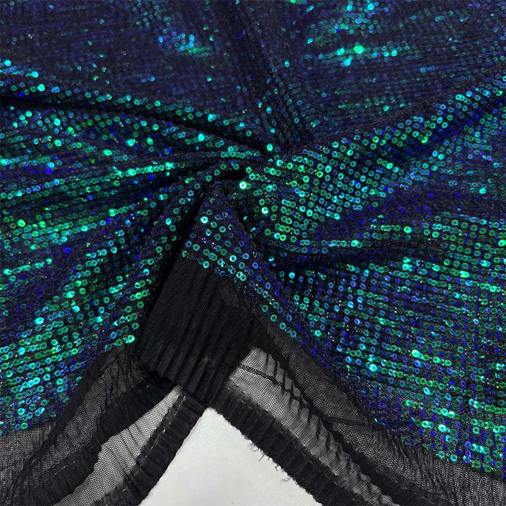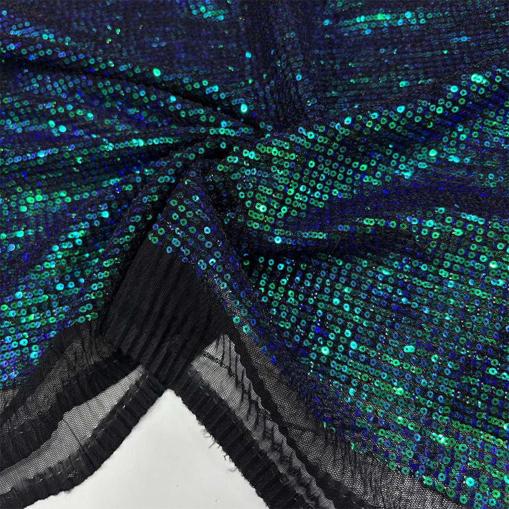 - Işıltılı ve Parlak Yüzey: Kumaşın üzerine işlenen pullar sayesinde ışığı yansıtan ışıltılı bir görünüme sahiptir.