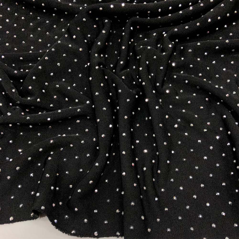Taş İşlemeli Jarse Kumaş Siyah